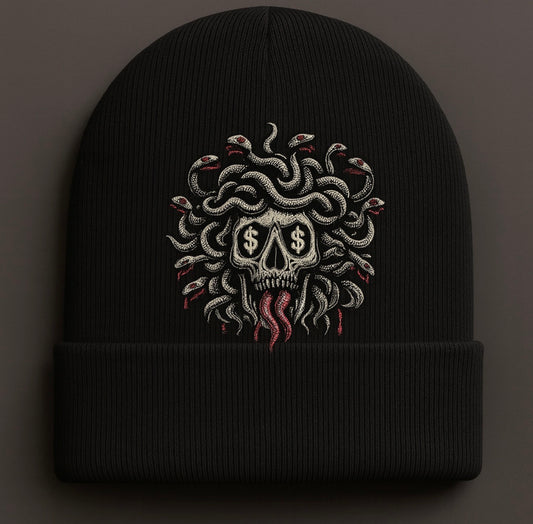 Vendor:VenomcashapparelRegular price $30.00 USDRegular priceUnit price perSale price $30.00 USDVenom in every stitch. The Medusa Head Beanie showcases the legendary VC head logo — snakes, cash, and all — stitched clean for a bold, timeless look. Wear it like armor and let them know you move different.